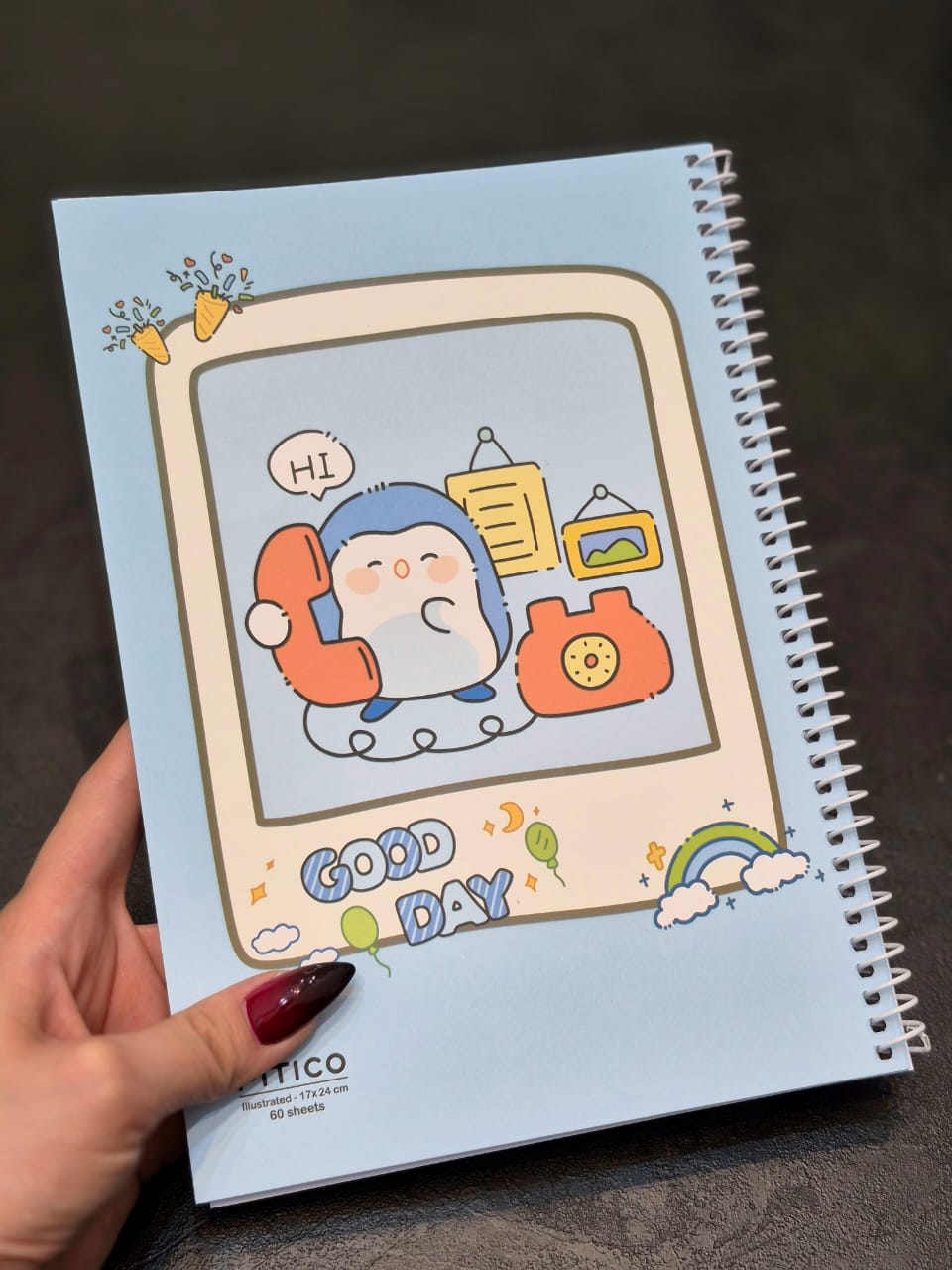دفتر های 60 برگ حاشیه دار در طرح های کیوت و زیبا ساخته شرکت پیتیکو با کیفیت بالا عرضه بازار شده است. صحافی این دفاتر سیمی و جلد آن گلاسه و از کاغذ با کیفیت ساخته شده است