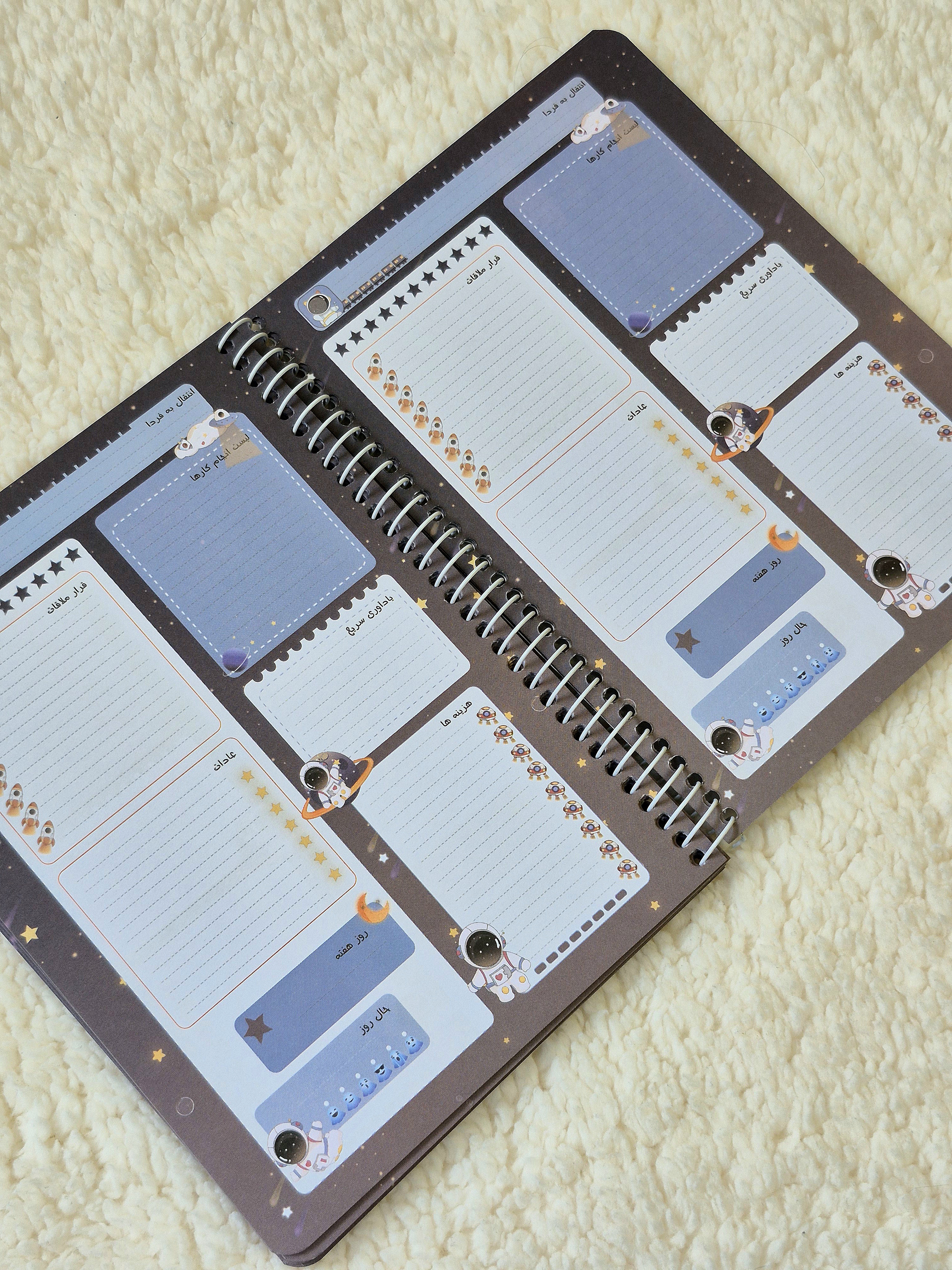 پلنر (دفتر برنامهریزی) ابزاری کاربردی برای مدیریت بهتر زمان، ثبت اهداف روزانه و افزایش بهرهوری است. با طراحی منظم و بخشبندی هوشمند، به شما کمک میکند کارها، برنامهها و اولویتهایتان را مرتب و بدون استرس دنبال کنید. مناسب برای دانشآموزان، دانشجویان، شاغلان و هرکسی که دوست دارد منظمتر، هدفمندتر و با تمرکز بیشتر پیش برود